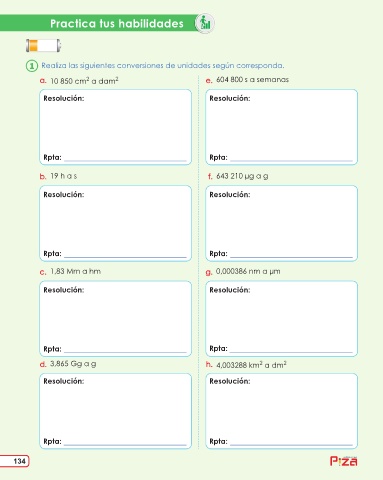 a. 10 850 cm a dam 2 e. 604 800 s a semanas