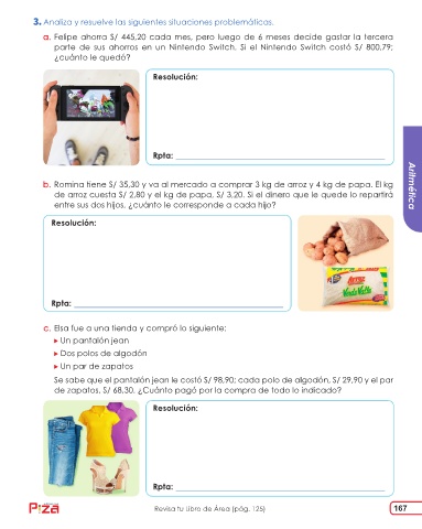 b. Romina tiene S/ 35,30 y va al mercado a comprar 3 kg de arroz y 4 kg de papa. El kg Aritmética