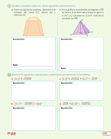a. Dado el siguiente poliedro, determina el b. En la gráfica, la pirámide es regular y MH