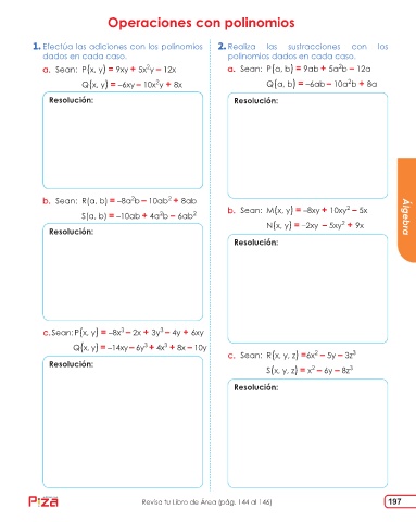 Efectúa las adiciones con los polinomios Realiza las sustracciones con los