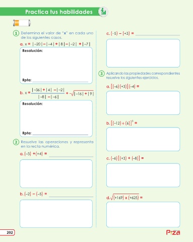 Determina el valor de “x” en cada uno c. (–5) – (+3) =