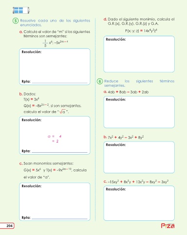 Resuelve cada uno de los siguientes d. Dado el siguiente monimio, calcula el