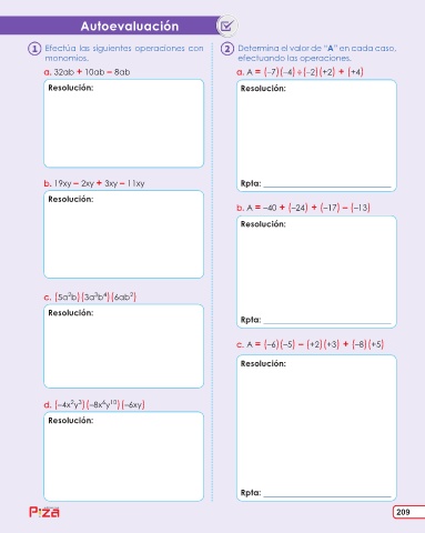 Efectúa las siguientes operaciones con Determina el valor de “A” en cada caso,