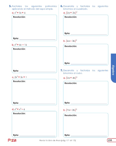 Rpta: Desarrolla y factoriza los siguientes Álgebra