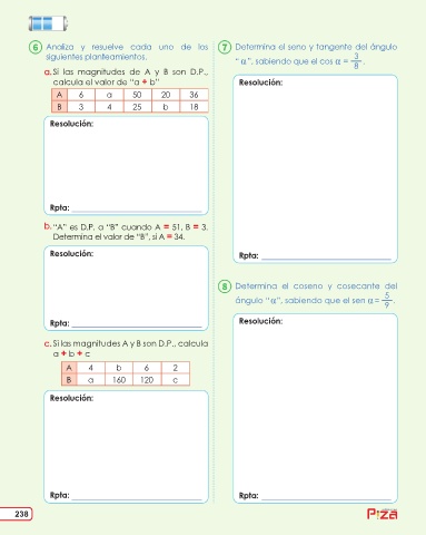 Analiza y resuelve cada uno de los Determina el seno y tangente del ángulo