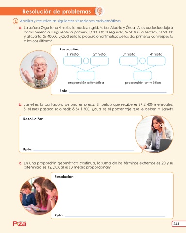 b. Janet es la contadora de una empresa. El sueldo que recibe es S/ 2 400 mensuales.