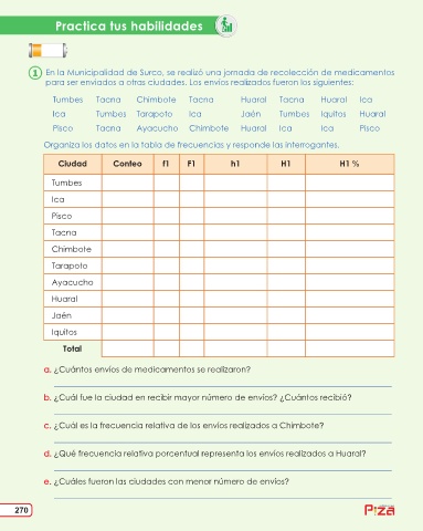 Organiza los datos en la tabla de frecuencias y responde las interrogantes.